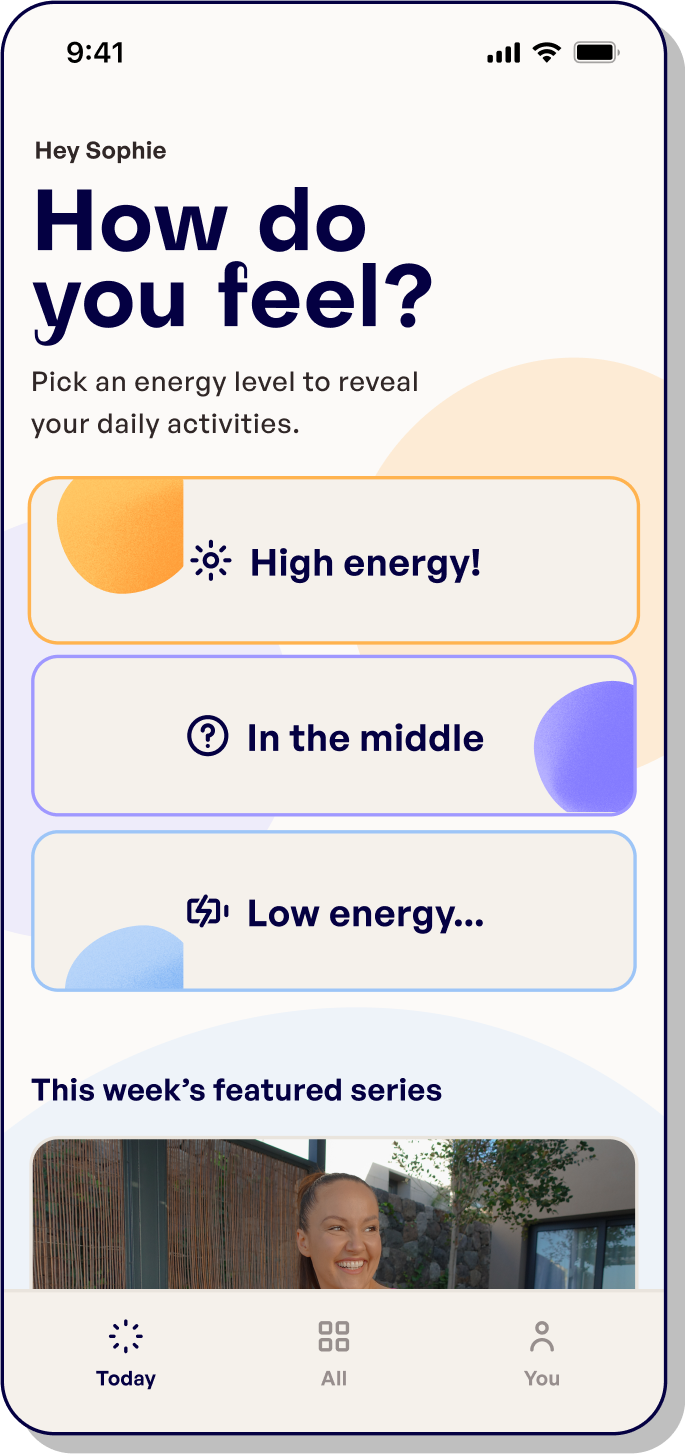 Mila’s unique Daily Energy Picker suggests activities based on how you’re feeling, so you can start moving without overthinking it.