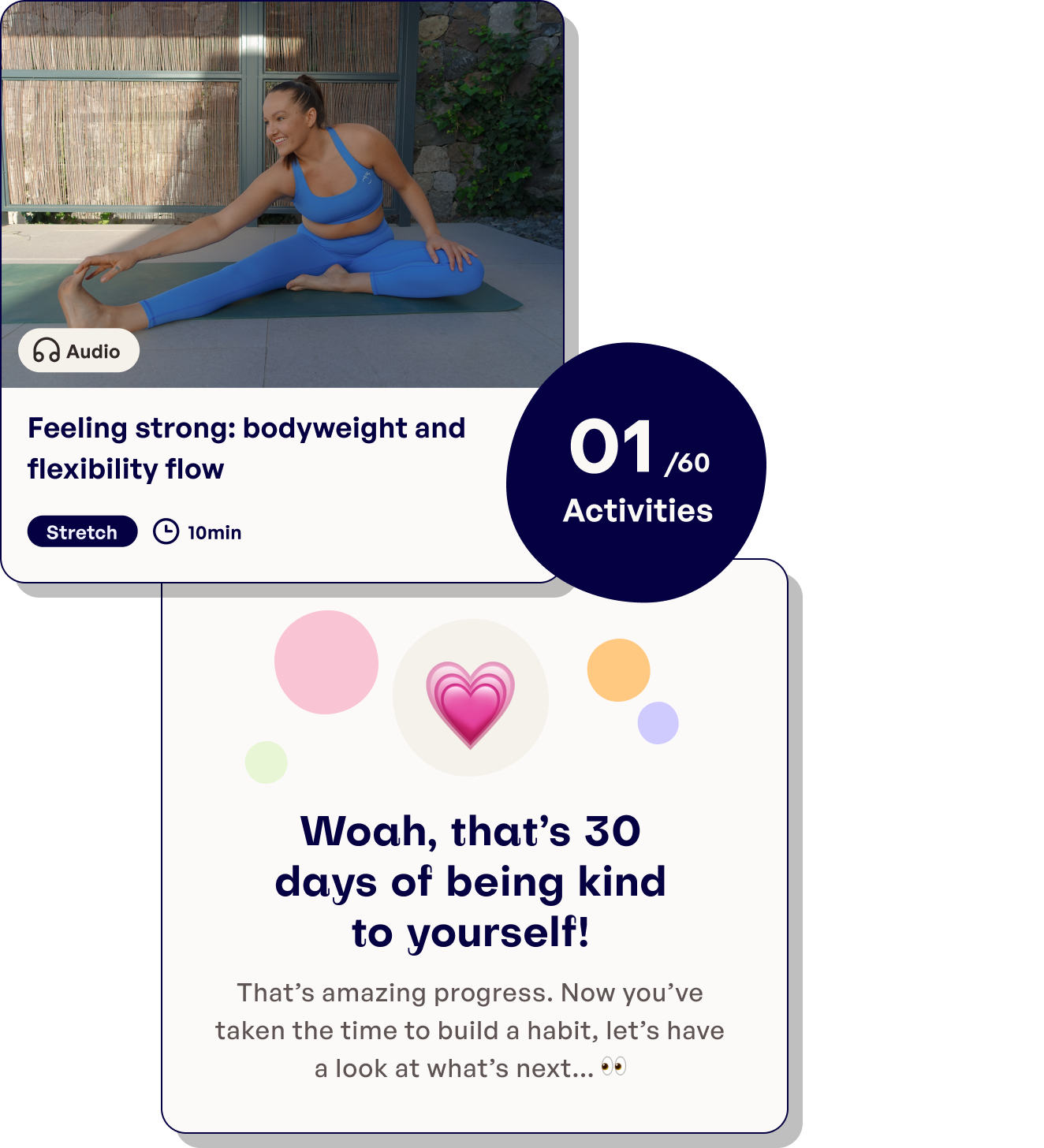 Mila’s guided series helps you build a routine of moving more, whether you’re easing into exercise, starting again after a break or trying to make fitness part of your every day.